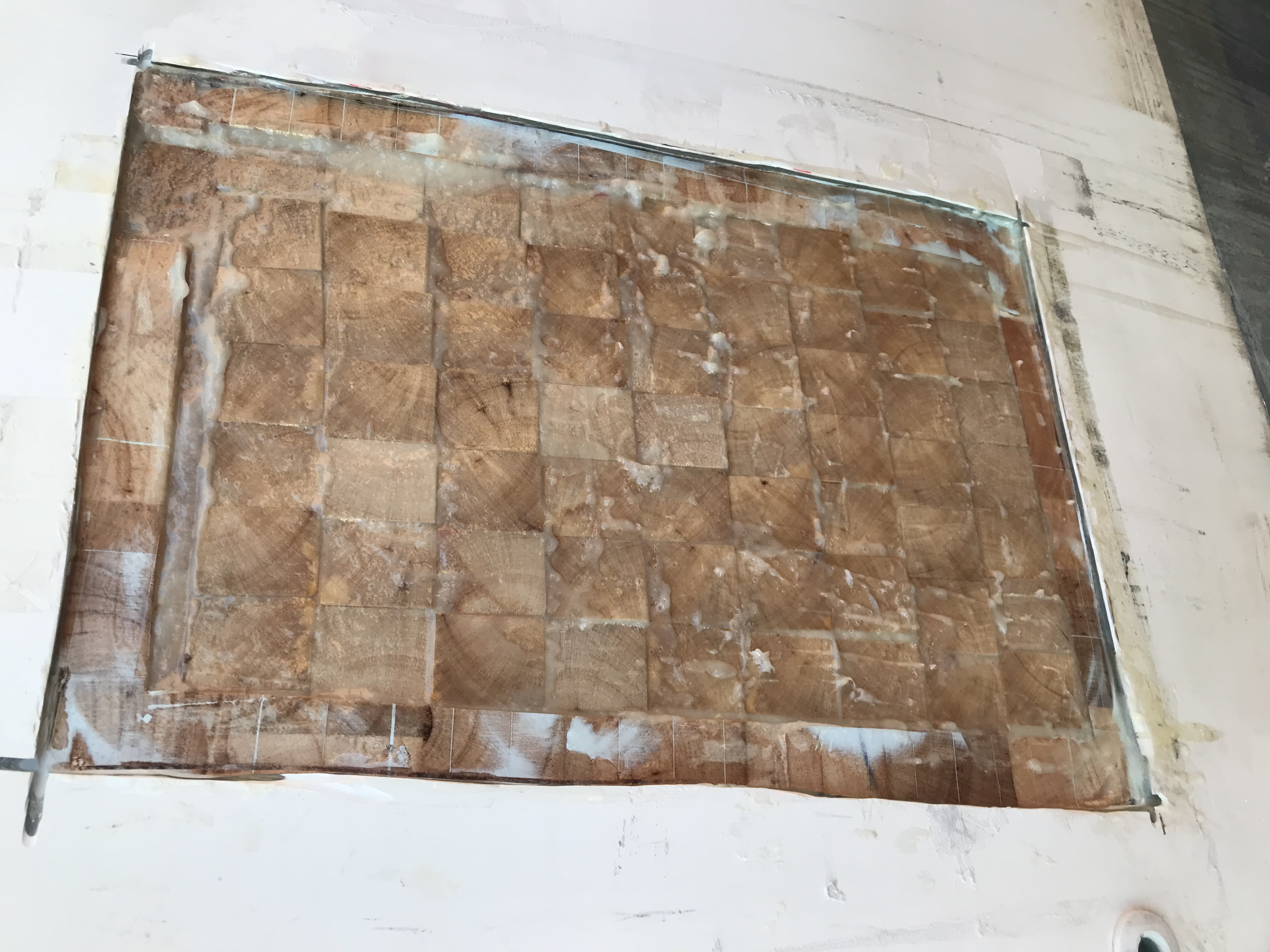 Upon assessing the deck, we identified that the balsa wood core, particularly located under the mast step, was severely deteriorated. Balsa wood, while lightweight and buoyant, is susceptible to moisture intrusion, which can lead to rot over time, especially in areas where water can accumulate or where the sealant has degraded. This deterioration not only weakens the deck but can also lead to further damage if not addressed promptly.